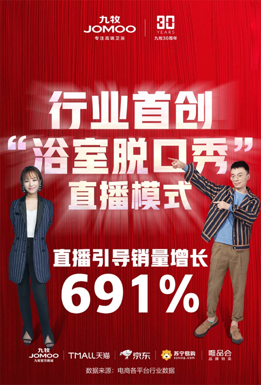 九牧堅持為用戶提供優(yōu)質(zhì)的產(chǎn)品,優(yōu)質(zhì)的服務(wù)。發(fā)哥的店銷售2.3個億,九牧行業(yè)率先實現(xiàn)正增長;618活動期間,九牧全網(wǎng)首創(chuàng)浴室脫口秀,“脫口秀最紅CP”思文、程璐加盟助陣,讓年輕消費力量更加貼近和熱愛國貨!