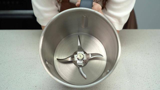 刀頭采用的是高強度耐磨四葉刀頭,也可以說是這款智能烹飪機的主要動力部分,不管是攪拌、和面、翻炒、碎肉等都有不俗表現(xiàn),畢竟是搭配自主研發(fā)的瞬時正反轉(zhuǎn)磁阻電機,除了壽命比一般的電機長外,正反轉(zhuǎn)帶來的高速運轉(zhuǎn)也能讓這款烹飪機帶來更強勁的動力,最高轉(zhuǎn)速可達11000轉(zhuǎn)/分,在電機層面也算是同類產(chǎn)品比較好的了。