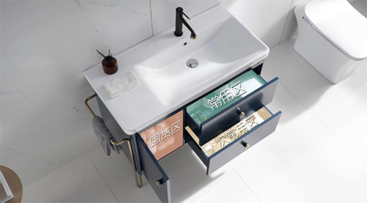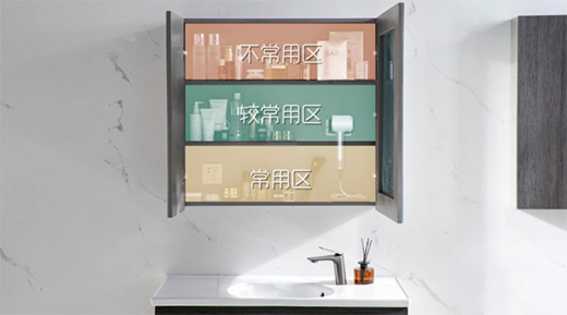 根據(jù)數(shù)據(jù)與需求,箭牌衛(wèi)浴空間收納白皮書給出了一套深度解決方案:選擇有層板分隔的臺盆柜,或者選擇抽屜式臺盆柜。按使用習(xí)慣進(jìn)行科學(xué)劃分為常用區(qū)、次常用區(qū)、囤貨區(qū)。常用區(qū)收納棉簽、化妝棉、發(fā)夾、剃須刀等常用小工具;次常用區(qū)收納吹風(fēng)機(jī)、卷發(fā)棒、干發(fā)帽、梳子等中型電器;囤貨區(qū)放牙具、化妝棉、洗臉巾、面膜等備用物品。