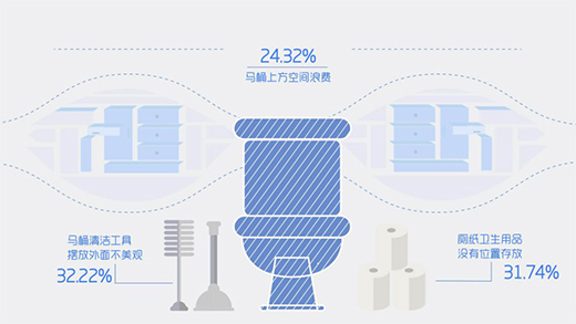 箭牌衛(wèi)浴空間收納白皮書也反饋出這個問題,調(diào)查問卷中29%表示空間浪費(fèi)沒有風(fēng)格、22%格局不合理。