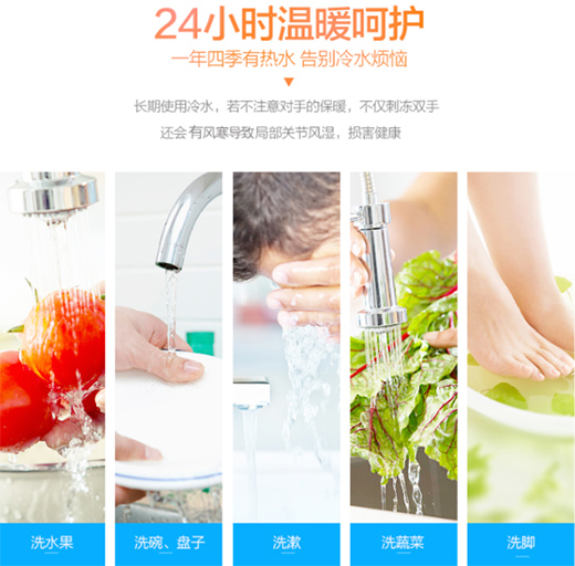 一般的熱水器管道接到廚房使用,管道會(huì)加長(zhǎng),廚房用水時(shí)很長(zhǎng)時(shí)間不出熱水,會(huì)導(dǎo)致浪費(fèi)水資源,增加用水量。華動(dòng)小廚寶XS9,1500W功率大,離出水口近,加熱快,無(wú)需等待,拒絕浪費(fèi);6.6升大容量,熱水輸出率80%以上,足量出水輸出大,蔬菜蔬果洗再多,熱水供應(yīng)也足量。既可以省去消耗的電,又能省掉等待熱水時(shí)的所流走的冷水。盡顯節(jié)約之美。