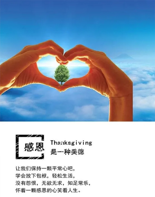 在這里我們要知道沒有企業(yè)的發(fā)展,就沒有小家的幸福,沒有企業(yè)的輝煌,就沒有事業(yè)的成就,企業(yè)與我們緊密相連,我們匯聚在此,不能僅限于把它當作謀生的手段,而更多的是以感恩的態(tài)度去面對它,服從領導,聽從指揮,用感恩的心去消除與上級的對立關系,刻盡職守,無私奉獻,用感恩的心去化解工作中的消極怠工,麻痹大意,用感思的心把企業(yè)的利益放在最前線。