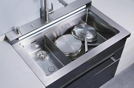 其次,為了盡可能減少廚電產(chǎn)品的占用空間,必須選擇高度集成化的產(chǎn)品。例如金帝旗下的集成灶產(chǎn)品,將油煙機、燃氣灶、蒸烤箱集于一身,實現(xiàn)了多種烹飪功能,實際占用空間還不足一平,并且多樣的功能也確定了其烹飪中心的位置;集成水槽,則是將水槽與洗碗機相結合,充分利用水槽下空間,打造出全新的廚房洗滌中心。