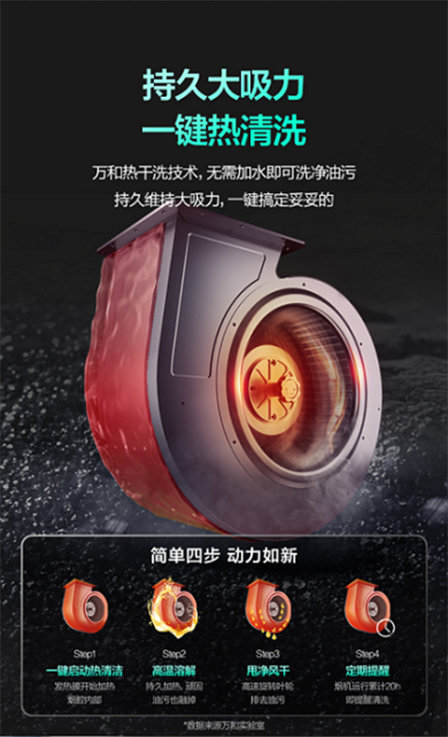 油煙機(jī)內(nèi)腔清洗一直困擾廣大的用戶,傳統(tǒng)煙機(jī)清洗清洗內(nèi)腔時,需拆卸冷凝板,油網(wǎng)等多個零部件,費(fèi)時費(fèi)力,雙手粘滿油污。萬和智能潛吸煙機(jī)L26T是一臺自動會洗澡的油煙機(jī),該煙機(jī)采用智能熱干洗技術(shù),每次工作完畢后,會啟動60S的內(nèi)腔自動清洗工作,最高溫度可達(dá)到80℃,使蝸殼與風(fēng)輪中的油污流入到油杯。當(dāng)煙機(jī)累計(jì)使用滿20小時,會啟動長達(dá)10分鐘的內(nèi)腔深度清洗工作,保持油煙機(jī)內(nèi)腔潔凈與動力輸出的始終如一。