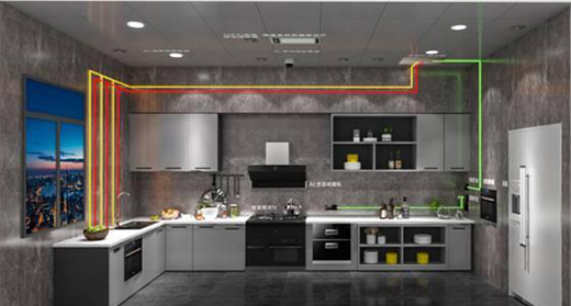 在MFAi廚房控制器的控制下,當體驗者進入智能廚房后,會識別體驗者采取相應(yīng)的智能配套方案,關(guān)閉自循環(huán)的UV殺菌、開啟筒燈、集成洗滌系統(tǒng)自動通電、啟動萬和AI熱水器等,烹飪前奏一切就緒。體驗者靠近煙機會自啟動煙機照明,燃氣灶搭配煙機發(fā)生器,感受到煙霧自動調(diào)檔排煙,烹飪結(jié)束后會智能處理安全隱患等內(nèi)容。洗滌、殺菌等也都會根據(jù)用戶生活習(xí)慣進行,未來廚房一切都充滿了智慧。