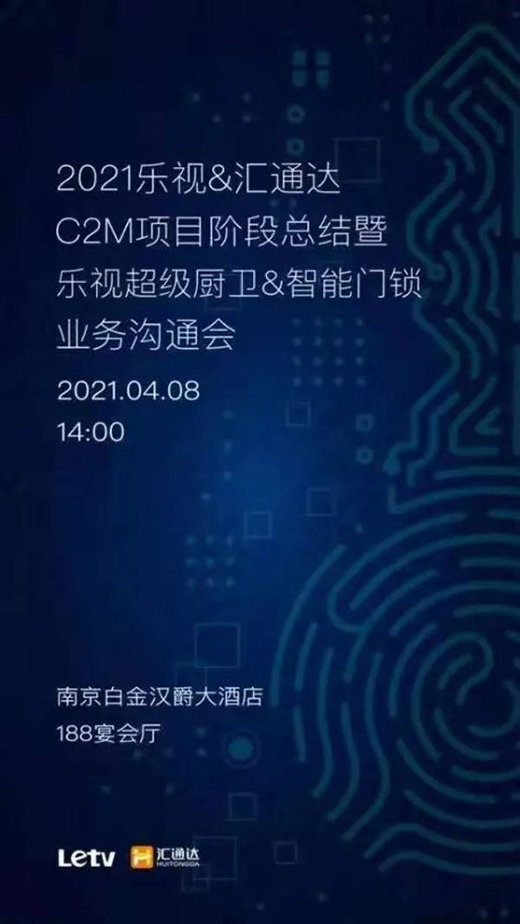 從海報(bào)可以看出,樂視超級(jí)廚衛(wèi)&智能門鎖業(yè)務(wù)溝通會(huì)將于4月8日在南京舉行。此次進(jìn)軍新的領(lǐng)域,樂視依舊與匯通達(dá)合作。