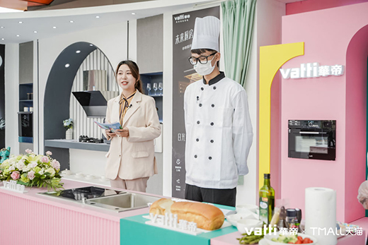 為擴(kuò)大發(fā)布會(huì)的受眾影響,本次戰(zhàn)略合作采取通過(guò)華帝天貓旗艦店進(jìn)行線上線下同步直播的方式,讓更多的觀眾參與其中。發(fā)布會(huì)于北京時(shí)間4月8日于杭州親橙里舉行,活動(dòng)現(xiàn)場(chǎng)分為室內(nèi)與室外兩片區(qū)域,室外則以產(chǎn)品展示的形式,結(jié)合年輕時(shí)尚的色彩搭配設(shè)計(jì),以及沉浸式的實(shí)景體驗(yàn),立足于年輕人潮流眼光而制定的現(xiàn)場(chǎng)企劃,使觀眾進(jìn)一步感受“悅己生活”的精彩?,F(xiàn)場(chǎng)華帝主播通過(guò)直播講解了華帝全系廚電新品,并與廚師通過(guò)新品蒸烤一體機(jī)23011iot款制作美食,真實(shí)感受華帝智慧廚電所帶來(lái)的對(duì)傳統(tǒng)廚房家居的創(chuàng)新與突破。