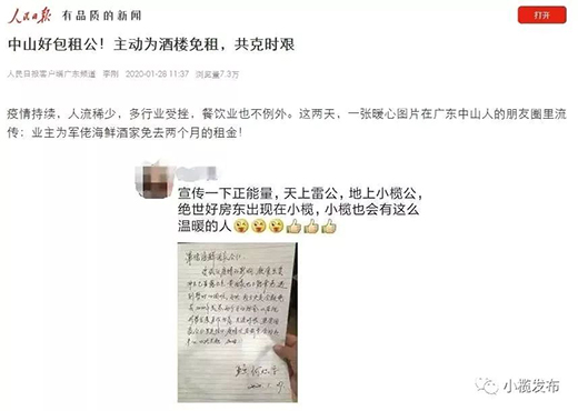 大災面前,行動是最好的注解。我會留意到,近期,人民日報等多家中央媒體報道了被網(wǎng)友贊為“中國好房東”的消息,廣州、深圳等有關(guān)方面也發(fā)出了倡議,引發(fā)了網(wǎng)友熱議和點贊。