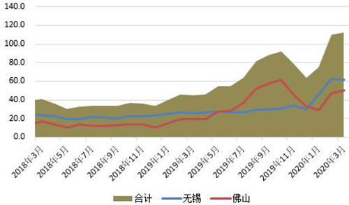 據(jù)不完全統(tǒng)計,至4月上旬無錫和佛山地區(qū)的不銹鋼庫存97.27萬噸,月度環(huán)比下降13.24%。庫存的下降主要是由于市場補庫導(dǎo)致庫存開始分散,表現(xiàn)為無錫市場300系及佛山市場200、300系庫存的下降。預(yù)計庫存仍有繼續(xù)下降需求,補庫集中到貨后貨將迎來庫存間歇性上升。