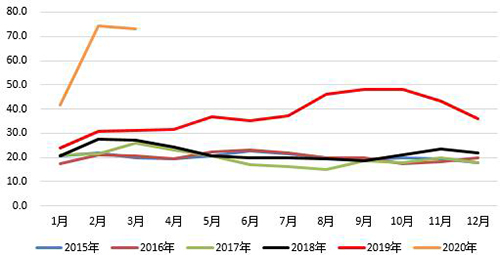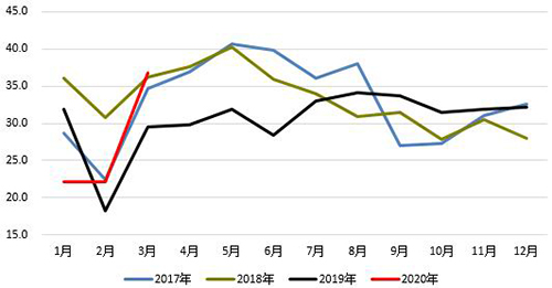 3月,國內(nèi)不銹鋼出口量為36.79萬噸,環(huán)比增長66.4%,出口環(huán)比增長主要是板卷及窄帶領(lǐng)域的出口增加,疫情因素,使得出口節(jié)奏順延,且人民幣的大幅貶值帶動市場出口積極性。