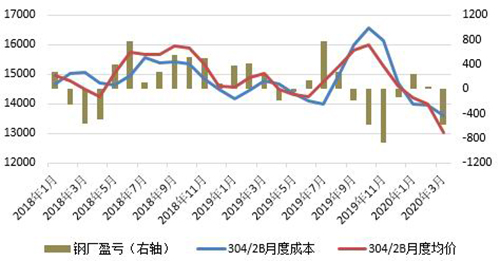 圖13:304/2B不銹鋼價格月度盈虧(元/噸)