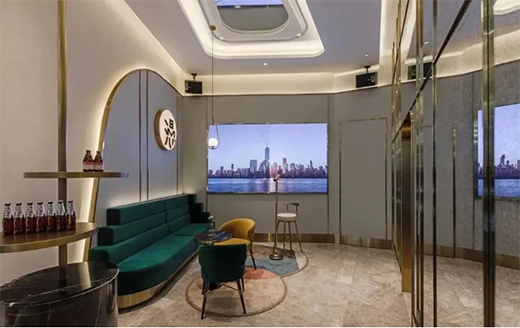 演唱區(qū)的設(shè)計簡單又體現(xiàn)出一番雅致,多處運用線條的設(shè)計與鏡面的搭配將空間延伸。