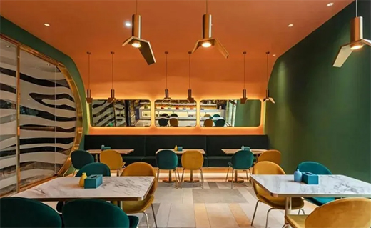 餐廳延續(xù)主題的色彩活躍氣氛,溫暖空間,體現(xiàn)了活色生香的生活理念。