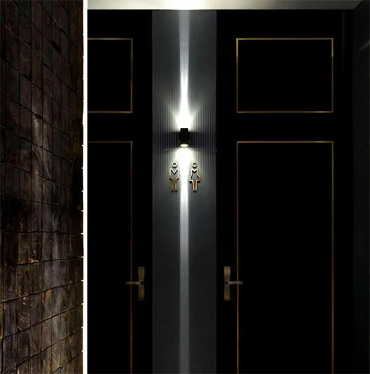 衛(wèi)生間門(mén)上的金屬線條經(jīng)過(guò)光的反射,給昏暗的空間增添亮度,防止發(fā)生碰撞。
