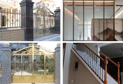 不銹鋼花紋管應(yīng)用廣泛,通常應(yīng)用于家居裝飾、公共設(shè)施、建筑工程、藝術(shù)應(yīng)用。具體產(chǎn)品有不銹鋼樓梯扶手、不銹鋼欄桿、不銹鋼圍欄、不銹鋼大門、不銹鋼屏風(fēng)。部分花紋管由于花紋的原因,防滑性能優(yōu),具體應(yīng)用到公交車防滑扶手,以及體育器材當(dāng)中。