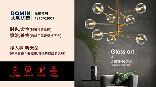 大明照明深信,一個成功的設(shè)計作品,是可以感染人的。大明希望,當(dāng)人們勞累一天回到家的時候,目光輕易可以觸及大明的燈和燈所發(fā)出的光芒。大明相信,美麗的事物可以帶給人溫暖,并在情緒上撫慰他們疲憊的心靈。如同“美諾系列”燈具的名字,我們有理由相信,一個用心去體會、對生活有追求的人,肯定能感受大明照明對于“美的承諾”。