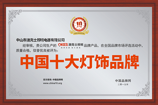 中國(guó)品牌崛起 澳克士照明蟬聯(lián)“中國(guó)十大燈飾品牌”
