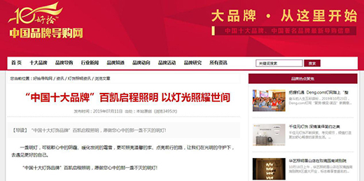 2019年,從《新浪》、《網(wǎng)易》、《搜狐》、《騰訊》等中國(guó)著名門戶網(wǎng)站,到《中國(guó)品牌網(wǎng)》、《中國(guó)品牌招商網(wǎng)》、《中國(guó)品牌導(dǎo)購(gòu)網(wǎng)》等全行業(yè)知名媒體,再到《中國(guó)建材家居網(wǎng)》、《中國(guó)家居資訊網(wǎng)》等泛家居行業(yè)平臺(tái),都曾對(duì)百凱啟程照明進(jìn)行過采訪與報(bào)道,也皆對(duì)百凱啟程的發(fā)展給予了高度的評(píng)價(jià)。