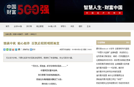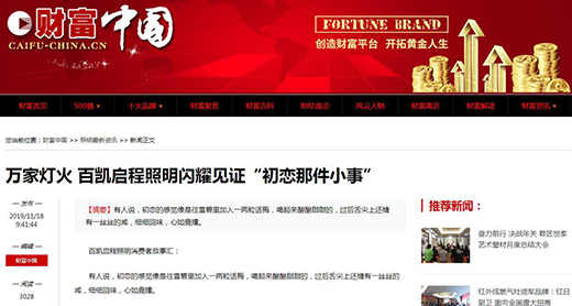 又如2019年中秋節(jié),百凱啟程在《中國(guó)財(cái)富500強(qiáng)》上刊載對(duì)粉絲“愛的告白”:月光雖無(wú)法十二時(shí)辰照亮我們,但百凱啟程照明卻可時(shí)時(shí)刻刻守候在旁。不管白天,還是黑夜,只要你需要,百凱啟程便一直在!