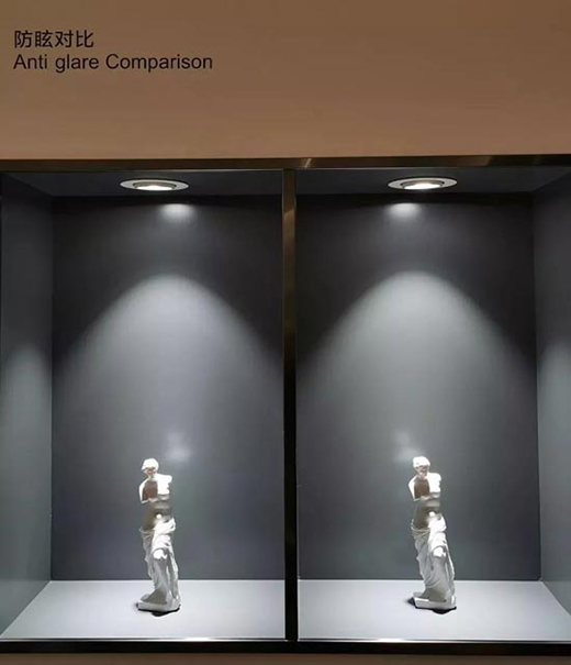 洽談區(qū)域,通過增加燈具光源與發(fā)光口的距離深度,將光源的發(fā)射范圍縮小,保證人們在一定的視覺范圍內(nèi)無法直接看到光源。