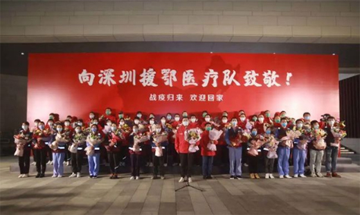 白衣做戰(zhàn)袍,慷慨赴荊楚。自2月9日,13名醫(yī)護人員組成的深圳首批支援湖北醫(yī)療隊出征,隨后半個月時間里,深圳先后再派出4支醫(yī)療隊共77名隊員,奔赴湖北武漢和荊州的抗疫一線。本次首先返回的是其中3支醫(yī)療隊,其中1支馳援武漢,2支馳援荊州,總計47人,深圳市委書記王偉中、市長陳如桂迎接并慰問隊員。據悉,隊員們回深后,將集中休養(yǎng)14天,再回家與家人團聚。
