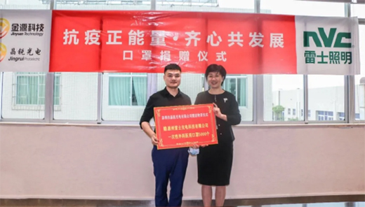 4月21日下午14:30,一場簡單而溫情的口罩捐贈儀式在雷士工業(yè)園舉行。作為中國雷士照明產業(yè)鏈上游供應商,廣東金源照明科技股份有限公司、深圳市晶銳光電有限公司為答謝中國雷士照明一直以來的業(yè)務支持,專程為中國雷士照明的員工捐贈了一批醫(yī)用外科口罩。
