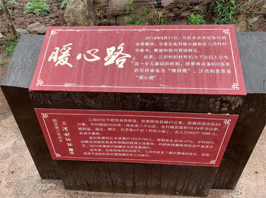 2018年習(xí)近平總書記在三河村看望慰問貧困群眾,當(dāng)年走過的石板小路被命名暖心路