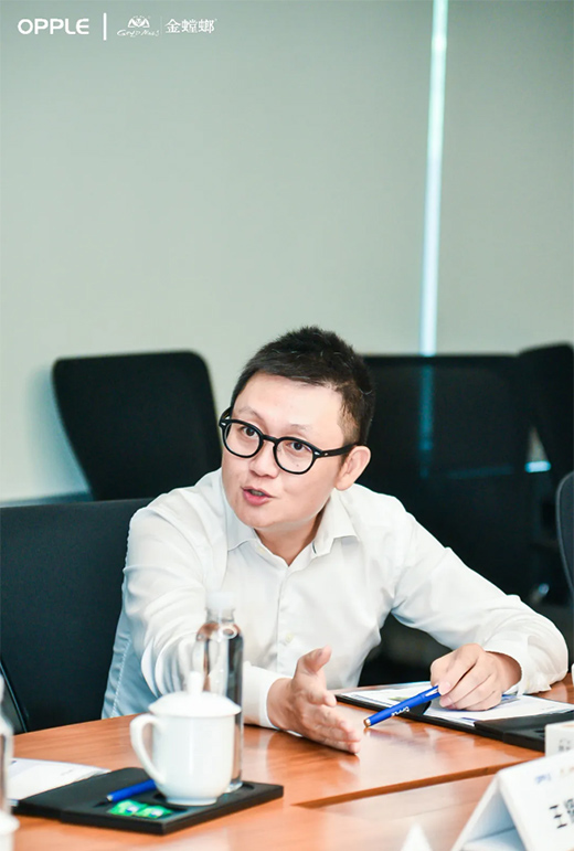 在簽署深化合作協(xié)議前,歐普照明與金螳螂高層代表首先就各自對于行業(yè)發(fā)展趨勢的洞察以及雙方未來多層級合作的可能性進(jìn)行了深入的溝通與交流。王耀海表示,產(chǎn)品要與設(shè)計相結(jié)合,通過設(shè)計師結(jié)合到場景中去。超越需求的產(chǎn)品才能引領(lǐng)消費。