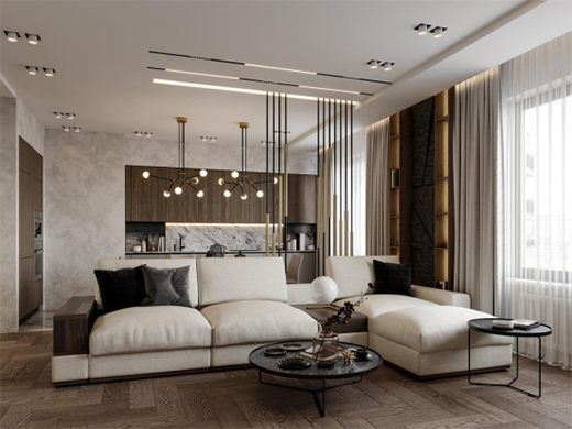 鋒磁天下追月、攬月系列磁吸燈在茶幾、電視機柜等位置內(nèi)部增加光源,在滿足照明功能的同時,能攫取人們的視覺焦點,打造出輕盈、靈動又不失精致格調(diào)的空間語境。直接在墻面或天花上安裝鋒磁天下磁吸燈,通過線條勾勒空間輪廓,其與家居棱角的巧妙組合可以弱化空間的封閉圍合感,從視覺上延伸整個客廳空間,還能起到劃分區(qū)域空間的作用。