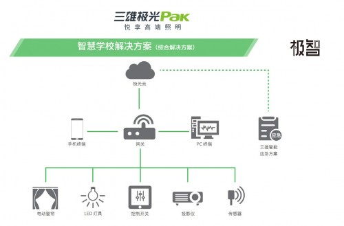 迎合時下智慧學(xué)校的發(fā)展趨勢,三雄極光已推出智慧校園整體解決方案,可以通過將互聯(lián)網(wǎng)設(shè)備連上云端,從而實現(xiàn)對校園環(huán)境進行整體智能化管控,有效提高校園的管理系統(tǒng)。