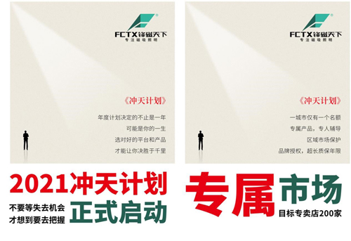 2021年,鋒磁天下正式啟動(dòng)《沖天計(jì)劃》,以百萬補(bǔ)貼,尋找城市合伙人,讓專屬市場的目標(biāo)專賣店增至200家!