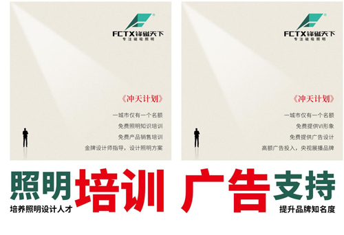 CCTV央視展播品牌、中國十大家居照明品牌、先進(jìn)化生產(chǎn)基地、全國1000多家銷售網(wǎng)點(diǎn)……從國內(nèi)磁吸照明的驅(qū)動(dòng)者到中國照明行業(yè)的領(lǐng)航者,鋒磁天下創(chuàng)造了一個(gè)又一個(gè)商業(yè)奇跡,也吸引著無數(shù)精英人士加盟,創(chuàng)造財(cái)富神話。