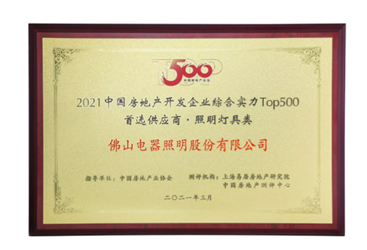 佛山照明入圍2021年中國(guó)房地產(chǎn)開(kāi)發(fā)企業(yè)綜合實(shí)力TOP500首選供應(yīng)商