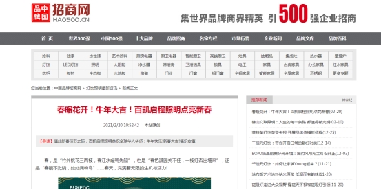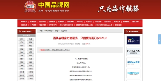 耐心瀏覽,用心閱讀,細(xì)細(xì)品味,相信大家透過《中國品牌網(wǎng)》、《中國企業(yè)家?品牌周刊》、《中國品牌招商網(wǎng)》等各大新聞資訊平臺刊載的百凱啟程文章報道,定能清晰感受到百凱啟程照明的品牌光輝及品牌態(tài)度,對其產(chǎn)生更強烈的興趣與好感。