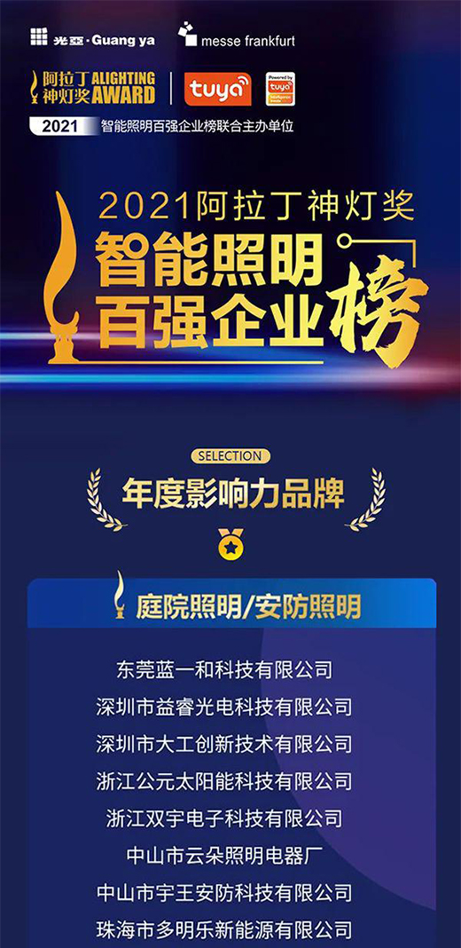 祝賀丨雙宇電子榮登2021阿拉丁神燈獎智能照明百強(qiáng)企業(yè)榜