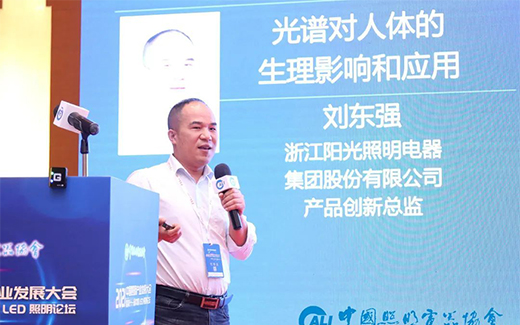 浙江陽光照明電器集團股份有限公司產(chǎn)品創(chuàng)新總監(jiān)劉東強以《光譜對人體的生理影響和應(yīng)用》為題,通過實驗數(shù)據(jù)介紹對比了光譜的差異及其對人的健康的影響,并通過實際應(yīng)用案例給出了具體解決方案。