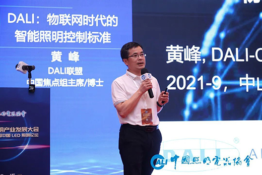 DALI聯(lián)盟CFG主席黃峰博士以《DALI:物聯(lián)網(wǎng)時代的智能照明控制標準》為題,為到場來賓詳細介紹了DALI聯(lián)盟的情況,并分享了DALI的技術(shù)的發(fā)展趨勢以及應(yīng)用案例。