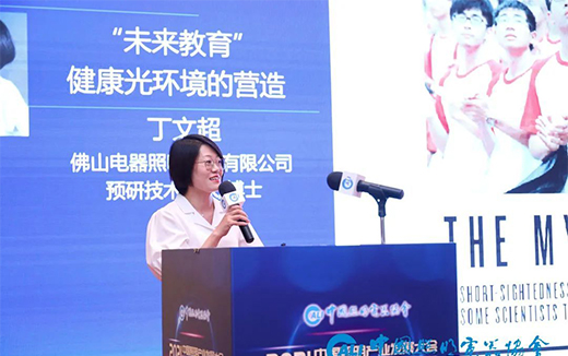 佛山電器照明股份有限公司預(yù)研技術(shù)專家丁文超以《“未來教育”健康光環(huán)境的營造》為題,向在場來賓分享了佛山照明在教育照明領(lǐng)域的成果。她表示目前我國青少年近視情況嚴峻,通過改善教育照明環(huán)境保護青少年視力健康,是科技工作者的使命所在。