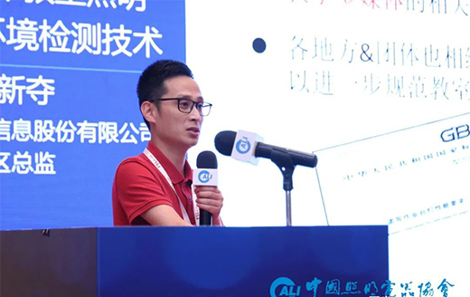 杭州遠方光電信息股份有限公司大區(qū)總監(jiān)楊新奪以《兒童青少年教室照明及相關(guān)光環(huán)境檢測技術(shù)》為題,詳細介紹了相關(guān)照明設(shè)備的應(yīng)用和性能評價,分析了教室照明現(xiàn)場的相關(guān)數(shù)據(jù)測量及結(jié)果,并給出了教室中控制眩光的具體方法。