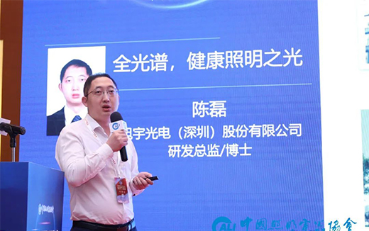 旭宇光電(深圳)股份有限公司研發(fā)總監(jiān)陳磊博士以《全光譜,健康照明之光》為題,全方面介紹了全光譜健康照明產(chǎn)品的研發(fā)背景及產(chǎn)品設(shè)計。