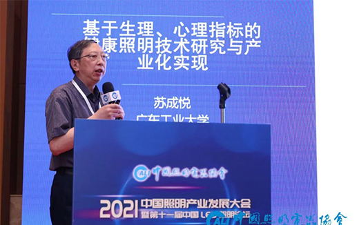 廣東工業(yè)大學的蘇成悅教授,向大家介紹了中山市在非視覺領(lǐng)域的研究和產(chǎn)業(yè)化應(yīng)用領(lǐng)域取得的研究成果。蘇教授的發(fā)言主題是《基于生理、心理指標的健康照明技術(shù)研究與產(chǎn)業(yè)實現(xiàn)》,介紹了健康照明的評價方法及相關(guān)產(chǎn)品的應(yīng)用。