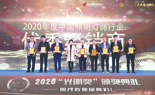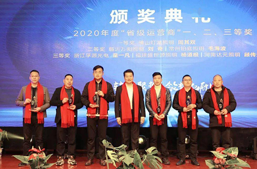 ▲世林照明兩廣運(yùn)營中心總經(jīng)理周其雙(右一)入選2020“光明獎”年度優(yōu)秀經(jīng)銷商。