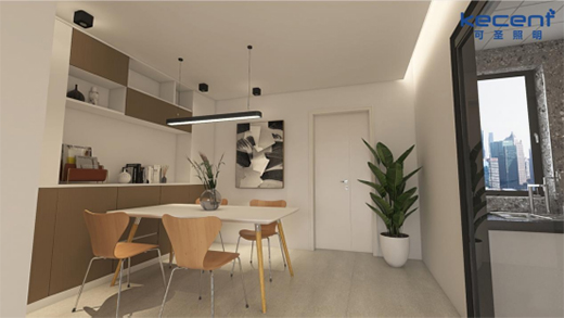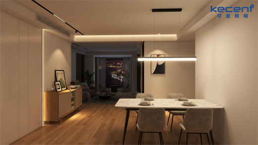 KECENT可圣照明:民以食為天,餐廳作為“食”之所在,在燈光設(shè)計(jì)方面自然容不得一絲馬虎。從如今的商品房戶型來看,餐廳既有空間較為寬敞的獨(dú)立模式,又有客餐廳一體及餐廚一體的模式,后兩者在考慮燈光設(shè)計(jì)時(shí)既要考慮餐廳自身的光照使用情況,又得結(jié)合客廳或廚房的燈光需求,因而更考驗(yàn)設(shè)計(jì)師的功力。