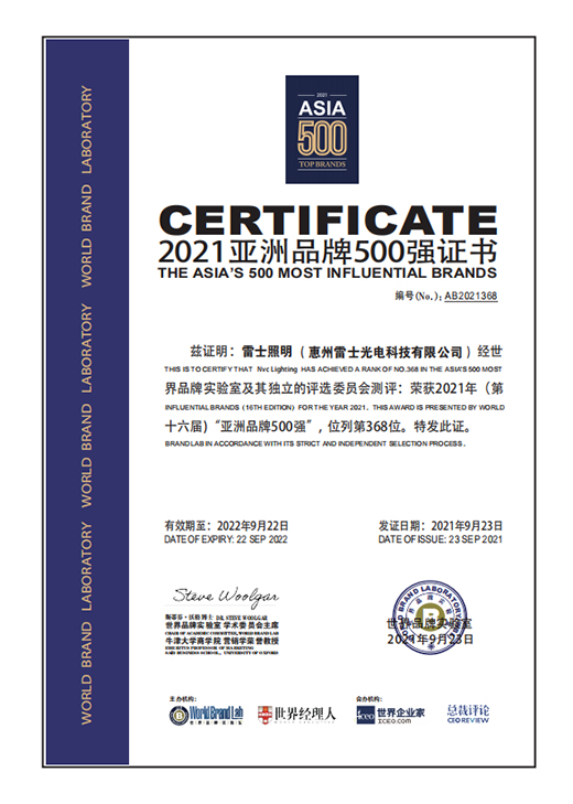 9月,雷士照明再度入選2021年亞洲品牌500強(qiáng),這已是其連續(xù)兩年上榜,也是照明行業(yè)內(nèi)唯一連續(xù)兩年上榜的照明品牌。