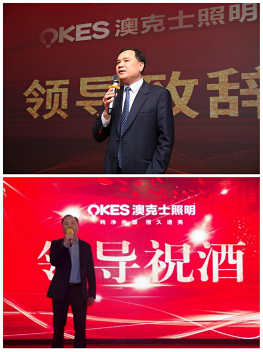 隨后,澳克士照明執(zhí)行董事區(qū)沃鉅發(fā)表致辭,與所有人一起分享了公司的成立、起步和發(fā)展歷程,呼吁大家不忘初心,要始終保持對事業(yè)的堅持和熱愛,區(qū)總情真意切的講話引起了在場人員的共鳴和響應。致辭結束后,潘總、區(qū)總及嘉賓一同上臺祝酒,為今晚的相聚時光和未來展望舉杯同慶,共同祈愿大家在新的一年里能創(chuàng)造出更耀眼的輝煌。