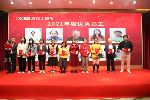 2021年澳克士照明踏著穩(wěn)健的步伐,步步為營,碩果累累。榮耀背后,離不開一批優(yōu)秀的管理者和員工,他們揮灑自已的汗水,用激情點燃夢想,用奮斗創(chuàng)造輝煌,締造了一個又一個奇跡。年會現(xiàn)場設置了盛大的頒獎典禮,分別對2021年度“優(yōu)秀員工獎”、“十年功勛員工獎”、“銷售精英獎”、“優(yōu)秀管理者獎”等優(yōu)秀標桿進行隆重加冕。