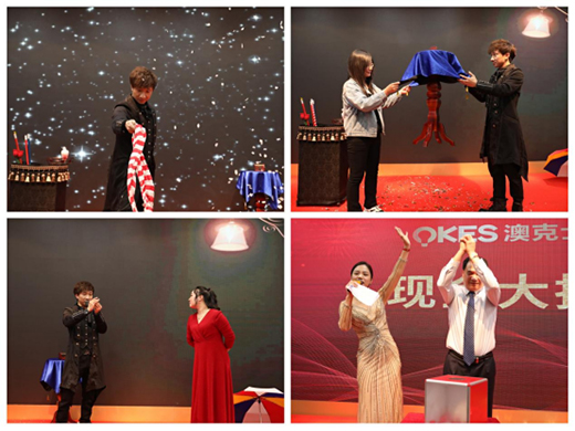為了更好的活躍現(xiàn)場氣氛,會中還穿插了幸運抽獎環(huán)節(jié)和魔術表演,精美的禮品、亦真亦幻的魔術讓現(xiàn)場的歡呼聲和喝彩聲此起彼伏,現(xiàn)場火熱沸騰。大家?guī)е鴮γ篮梦磥淼钠谠S,歡快地打趣與嬉笑,將年會現(xiàn)場的氛圍推至高潮。最后,澳克士照明全體同仁上臺合影留念,整個年會在和諧、溫馨、激情、歡樂的氣氛中圓滿落下帷幕。