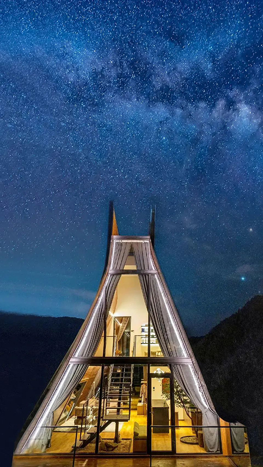 你一定想象不到,在山野間,原本這一片坐擁美景卻本無人煙的地方,居然坐立著一家軟硬件配備堪比五星級酒店的秘境民宿,可以讓人們住在云上秘境懸崖邊,享受野奢避世之旅。