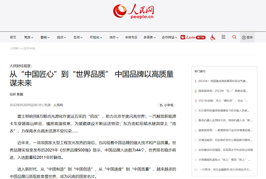2022年5月9日,人民網(wǎng)特別發(fā)布第六屆“中國(guó)品牌日”專題報(bào)道《“國(guó)品之光”新觀察》,在專題中對(duì)民族品牌雷士照明給予了高度的評(píng)價(jià):“從‘中國(guó)制造’到‘中國(guó)創(chuàng)造’,從‘中國(guó)速度’到‘中國(guó)質(zhì)量’,雷士照明以質(zhì)取勝,成為閃亮的國(guó)家名片?!?/p>