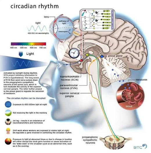 直到2017年,諾貝獎(jiǎng)生理學(xué)和醫(yī)學(xué)獎(jiǎng)授予了三位科學(xué)家,表彰他們發(fā)現(xiàn)了“控制晝夜節(jié)律生物鐘的分子機(jī)制”,為光照對人類健康的影響提供了依據(jù)。